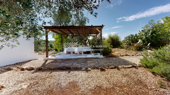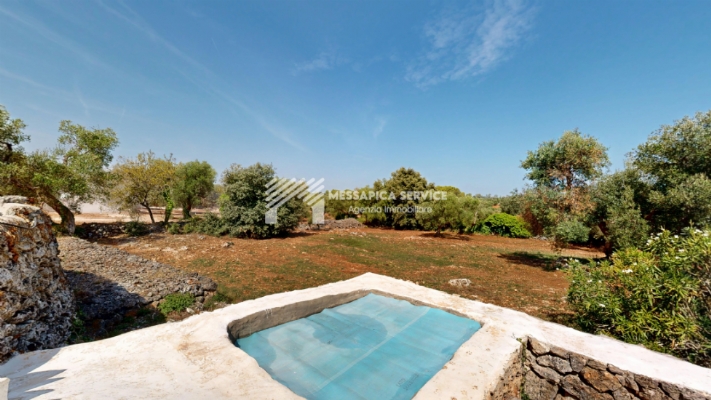 All'esterno, la proprietà si estende su un terreno di circa 11.500 mq e dispone di un ampio piazzale. Gli spazi esterni sono ideali per il relax, con una zona divani in cemento in stile tipico e una suggestiva piscinetta naturale in pietra. Completano la proprietà una piccola lavanderia, due cisterne e una fossa imhoff.