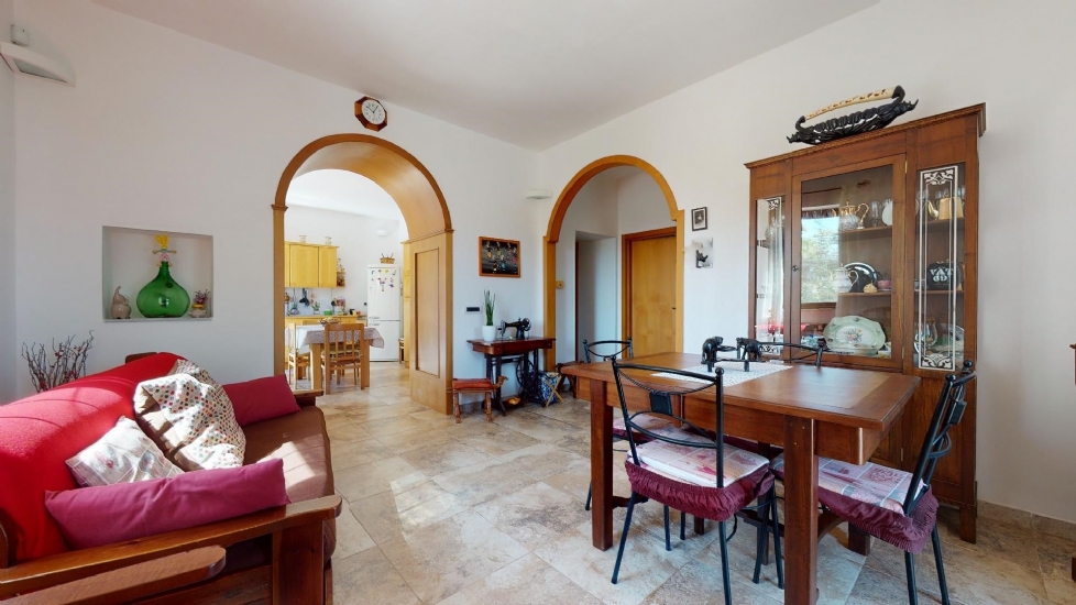 Abitazione principale: ingresso-soggiorno con camino, cucina abitabile, camera matrimoniale, cameretta e bagno.