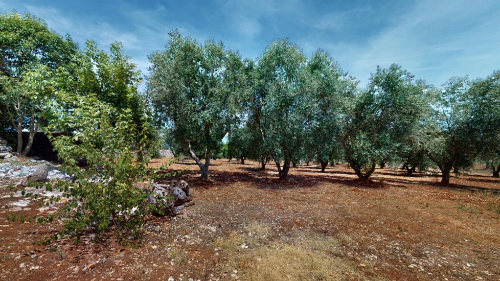 La struttura è provvista di due cisterne, una piccola corte, ampio piazzale ed un terreno di circa 11.400 mq. con ulivi ed alcuni alberi da frutto.