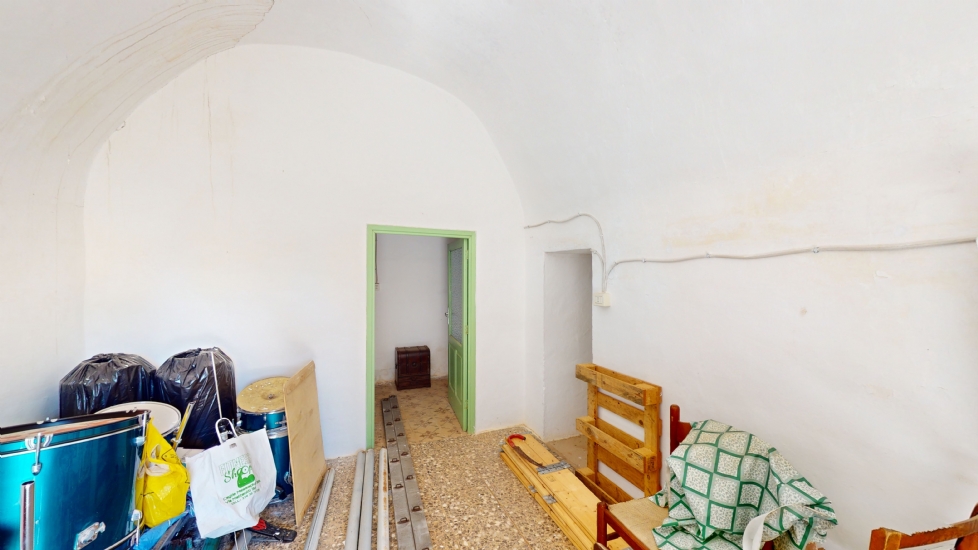 La soluzione è composta da un trullo saraceno e 2 lamie di cui, la prima in pietra con tipiche volte a botte con bagno, collegata internamente al trullo, e la seconda con tetto piano, che può essere collegata alla lamia in pietra tramite un’apertura interna.