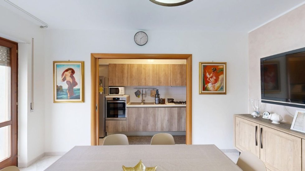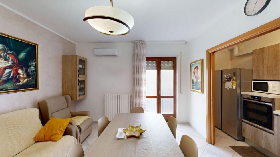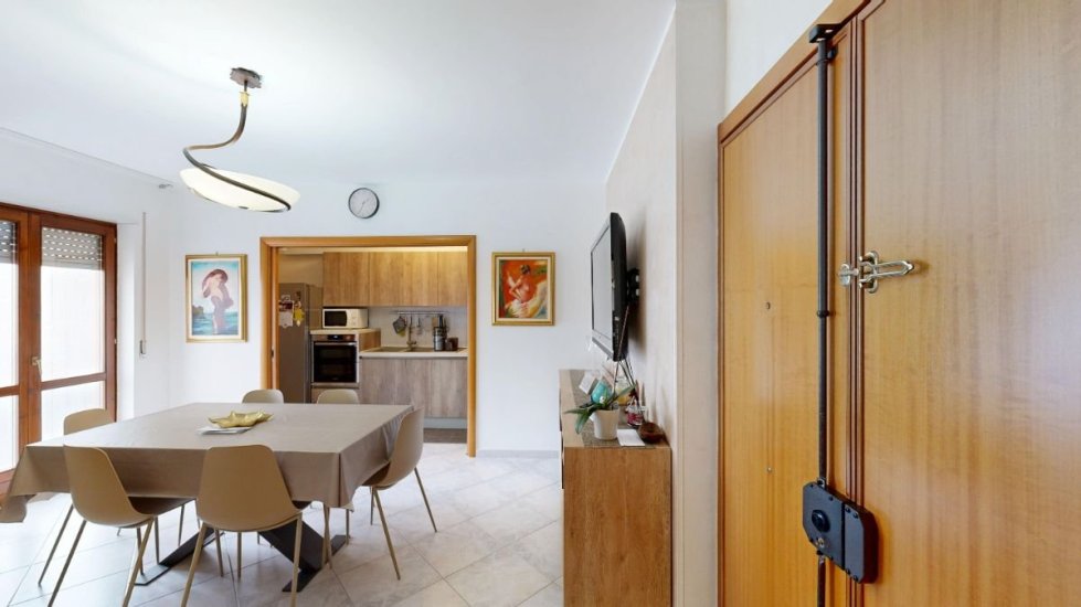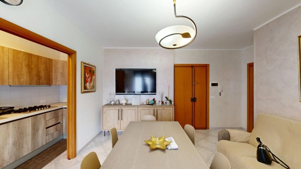 Situato al 1° piano con ascensore, l’appartamento si apre su un accogliente ingresso-soggiorno dove il cucinotto a vista resta elegante e discreto grazie a una ampia porta a scrigno che separa gli ambienti con stile e funzionalità.