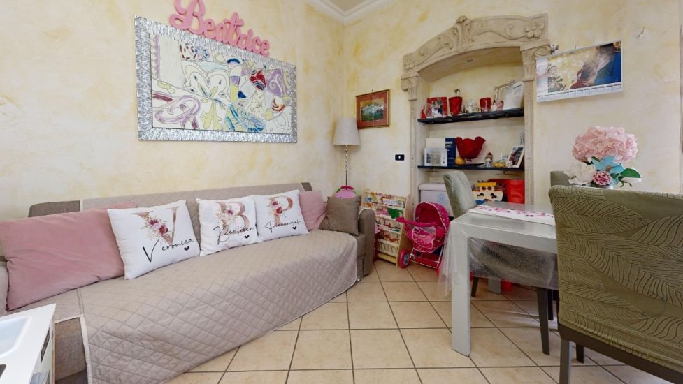 L’accesso al primo piano conduce a un ambiente caldo e ospitale, con ingresso su soggiorno, un cucinotto funzionale ed organizzato, una cameretta luminosa con finestra e un bagno completo rifinito con cura.