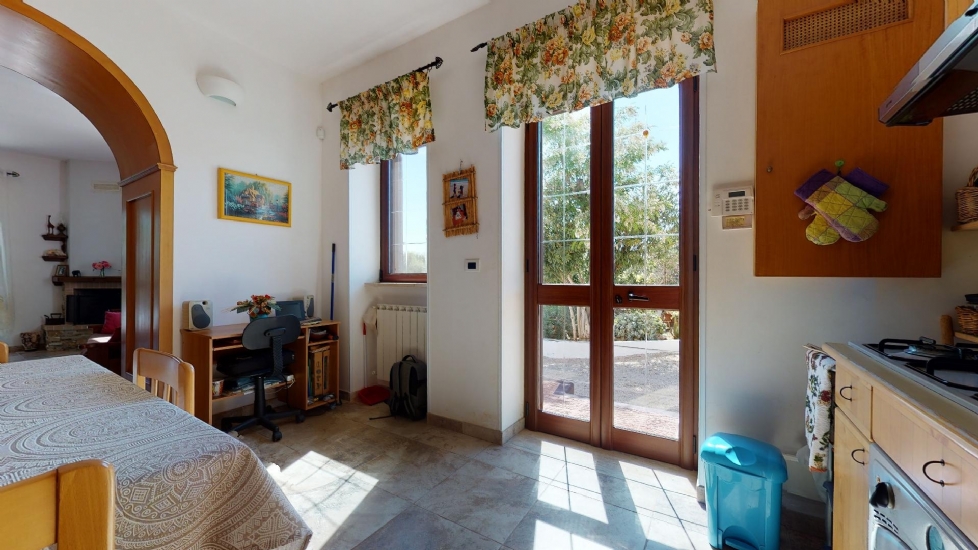 Abitazione principale: ingresso-soggiorno con camino, cucina abitabile, camera matrimoniale, cameretta e bagno.