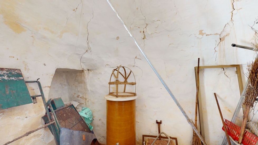La soluzione è appunto composta da un trullo ad un cono ben tenuto, e due lamie laterali in pietra, nella prima è ubicato il forno a legna e può essere collegata al trullo tramite un’apertura interna; la seconda invece, gia collegata internamente al trullo, presenta caratteristica vola a botte ed è dotata di una piccola finestra.
