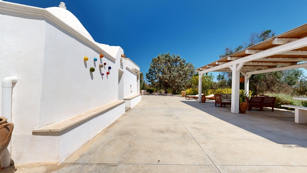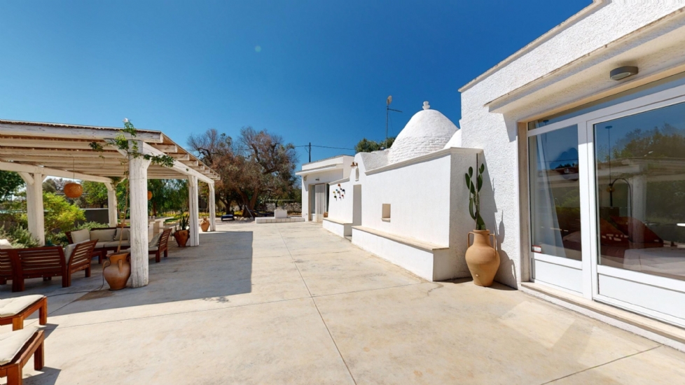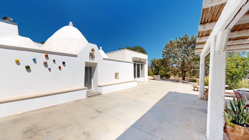 Questa proprietà combina il carattere tradizionale dei trulli con comfort moderni, offrendo un'esperienza abitativa senza pari. La struttura dispone di una piscina fuori terra di circa 40 mq, perfetta per rinfrescarsi nelle calde giornate estive.