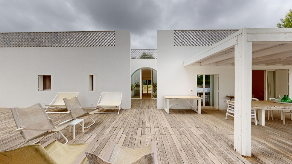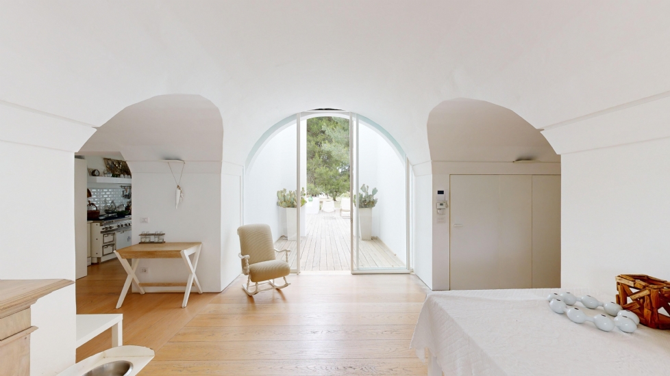 In agro di Villa Castelli, verso Grottaglie, si erge un'elegante dimora ristrutturata che coniuga il fascino del passato con il comfort del presente. L'imponente facciata bianca cattura lo sguardo, rivelando un'architettura dalle linee pulite e sofisticate. Ogni finestra, celata da delicate persiane bianche, contribuisce a creare un'atmosfera intima e riservata. Persino il tradizionale forno a legna, sapientemente integrato nella facciata, sottolinea l'armonia tra antico e moderno.